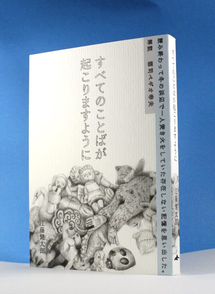 すべてのことばが起こりますように 江藤健太郎 初小説集 愛、笑い、海、狂気、デジャブ、旅をめぐる「人間」たちの物語。「書きたいから書いた。出したいから出した」既存の文芸の枠の「外」から突如やってきた破格の初小説集。 江藤健太郎『すべてのことばが起こりますように』 発行所:プレコ書房発売日:2025年4月28日判型:128mm×182mm B6判並製 192ページ造本:カバーなし ニス仕上げ 帯ステッカー付き価格:2,000円(税込2,200円)装画・装丁・本文レイアウト:柿木優解説:郡司ペギオ幸夫編集:江藤健太郎印刷・製本:藤原印刷ISBN:978-4-9913956-0-4注意事項:書籍にスリップはございません。 ご購入:プレコ書房オンラインショップ ご購入:Amazon 解説・推薦 郡司ペギオ幸夫(科学者・早稲田大学教授) 読み終わって、冬の浜辺で一人焚き火をしていた、存在しない記憶を思い出した。 「すべてのことばが起こりますように」の主人公であるウジャマ(内山)はデジャブとしての生を繰り返す。デジャブとして生き続けるこの感じをきっかけに、本解説もまたデジャブ体験のように書き連ねられることになる。ああ、江藤くんですか、知ってますよ。よく覚えてます。彼は私の授業の第一回の講義で、授業が終わると教卓に走り込んできましてね、言うんですよ。「郡司さん、早稲田の理工で郡司さんの授業わかるの、俺以外いませんよ」ってね。《解説より》 郡司ペギオ幸夫研究室サイト ◎江藤健太郎による初作品集。表題作の長編を含め5篇所収。執筆4年、制作半年の歳月を経て、ついに刊行。第1刷300部。第2刷500部(2025年5月)。◎『天然知能』、『やってくる』、『創造性はどこからやってくるか』など革新的著作を発表し続ける異能の天然知能科学者・郡司ペギオ幸夫氏による書き下ろし解説所収。◎著者自らが企画・編集すべて手掛けた渾身の一冊。装画・装丁はデザイナーの柿木優、印刷・製本は藤原印刷。自主制作本ながら本格的な仕上がりとなっております。◎この先ずっと小説を書いていきたい人、新人賞に応募し続ける以外の道を探っている人、いつか自分で本を出そうとしている人、そんな人たちへ。◎本書のために描き下ろされた柿木優による精緻な鉛筆画をはじめとし、表紙に板紙、本文用紙にコミックス紙、帯代わりにステッカーを貼付した画期的な造本。シンプルながら新しい装丁になっております。 目次とあらすじ(一部試し読みアリ) 隕石日和(短編20枚) ◎試し読みアリ(上記タイトルをクリック) ある晴れた日、「わたし」がベランダで洗濯物を干している。すると隣のベランダに「誰か」が出てくる気配がする。しかしそれはおかしい。隣室は空室のはず。蹴破り戸のせいで「誰か」の姿は当然見えない。警戒する「わたし」を見透かすように、「誰か」が「わたし」に喋りかけてくる。「そこにいるんだろ! まあ話そうや」。まるで人間そのものみたいな二人の対話が始まる。 すべてのことばが起こりますように(長編145枚) ◎試し読みアリ(上記タイトルをクリック) 朝四時、波打ち際、男が目を覚ます。波に飲み込まれそうになる痩せた身体。男の名はウジャマ。愛すべきウジャマ。起き上がったウジャマは神奈川から東京へと放浪の旅を始める。道中、ウジャマは様々な人に話しかけられる。仕事を飛んだ女、新興宗教の教祖、家出中の老婆、失恋し言葉が止まらなくなった男……。果たして、ウジャマはどこから来たのか何者なのかどこへ行くのか。愛、笑い、海、狂気、デジャブ、旅をめぐる「人間」たちの物語。 二回戦(短編20枚) 「カフカ短編賞」の授賞式に出席するために大学のキャンパスを訪れた「わたし」は、自身の作品が受賞しなかったことに不満を抱き、授賞式を襲撃する計画を立てている。式が始まる。受賞者の嬉光一が舞台上で受賞スピーチを始める。「皆さま、わたしはカフカの作品を読んだことは一切ございません」。呆気に取られる「わたし」をよそに、嬉光一による長い告白が始まる。「わたしは神奈川県の国府津という小さな町に生まれました」 ドリフター(短編40枚) ある日、大学院生の佐村のもとに、社会人になった友人の月川から電話がかかってくる。月川は海に行こうと佐村を誘う。佐村はギョッとする。学生時代、月川は度々佐村に自殺を仄めかしていた。その度に、佐村は「じゃあ死ぬ前に海でも行こうや」とたしなめていた。そのことが一気に思い出された。落ち着かない佐村と微動だにしない月川は新宿で合流し、熱海行きの電車に乗る。 一瞬、針(短編20枚) 南米映画を専攻する大学院生の寺尾は、岐阜県の海水浴場で開催される「お月見映画祭」に参加する。現地で寺尾は映画祭スタッフの河野と出会う。会場では、砂浜の上に直接スクリーンが置かれ、並べられたパイプ椅子にはぎっしりと老人が詰まっている。一人にされ奇妙な不安に駆られる寺尾。それを察知したかのように消えたり現れたりする河野。突然、河野による長いひとり語りが始まる。「寺尾さん、わた